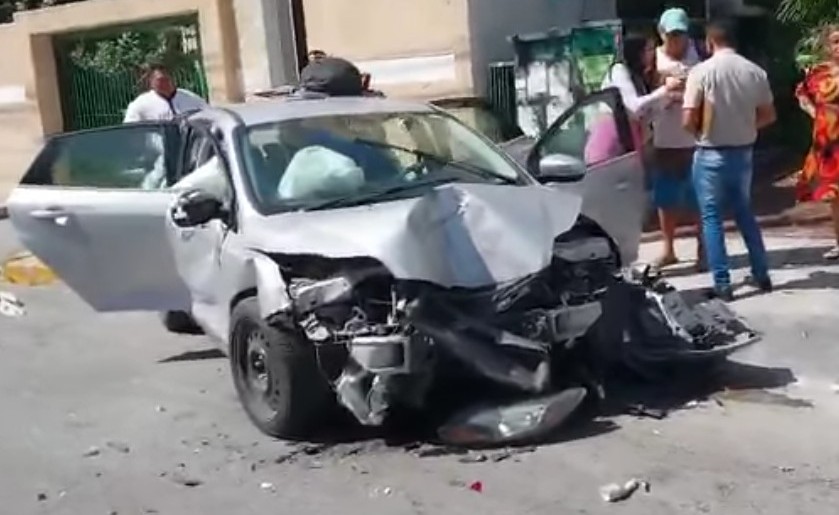 El automóvil con placas del extranjero terminó impactando contra un póster de luz, mientras que el autobús solo presentó un fuerte golpe de lado derecho en la parte delantera.