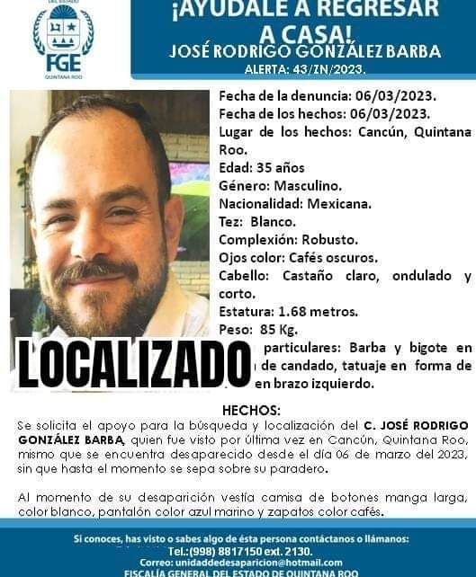 Aunado a lo anterior, alrededor de las 10 de la noche de este martes la Fiscalía General publicó en las redes sociales la ‘localización’ (en letras negras que refieren que fue encontrado sin vida) del joven empresario.