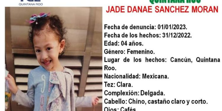 Jade Danaé Sánchez Morán de 4 años fue vista por última vez por sus familiares el pasado 21 de diciembre de 2022 en Cancún, Quintana Roo.
