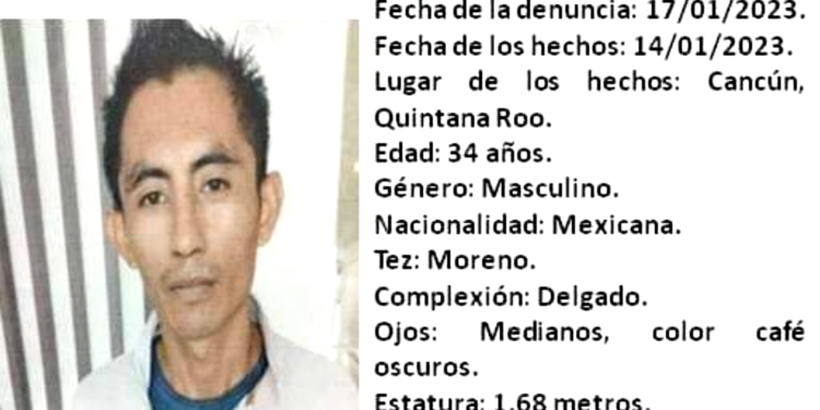 Carlos Javier Aguayo Estrella de 34 años fue visto por última vez por sus familiares el pasado sábado 14 de enero de 2023 en Cancún, Quintana Roo.