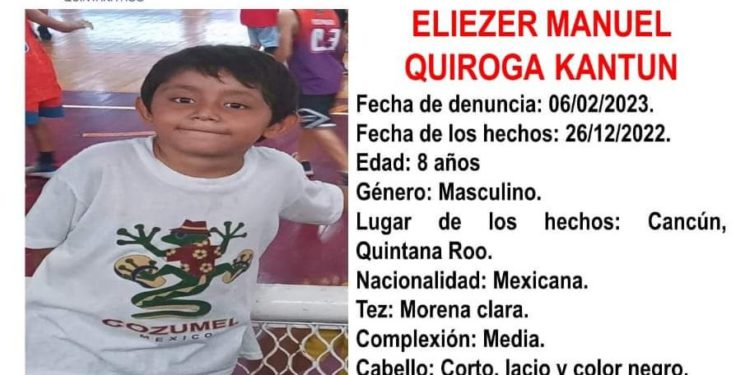 Eliezer Manuel Quiroga Kantún de 8 años fue vista por última vez por sus familiares el pasado 26 de diciembre de 2022 en Cancún, Quintana Roo.