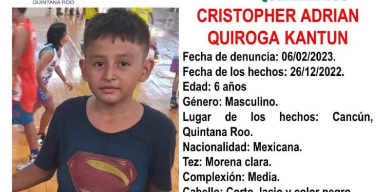 Cristopher Adrián Quiroga Kantún de 6 años fue visto por última vez por sus familiares el pasado 26 de diciembre de 2022 de enero de 2023 en Cancún, Quintana Roo.