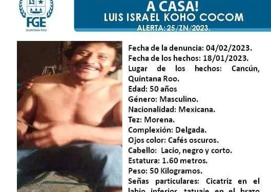Luis Israel Koho Cocom de 50 años fue visto por última vez por sus familiares el pasado 18 de enero de 2023 de enero de 2023 en Solidaridad, Quintana Roo.