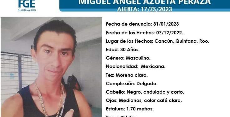 Miguel Ángel Azueta Peraza de 30 años fue visto por última vez por sus familiares el pasado 7 de diciembre de 2022 en Playa del Carmen, Quintana Roo.