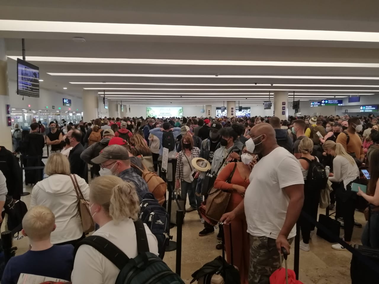 Al menos 140 empleados de Aeroméxico están contagiados de Ómicron, lo que genera que más de 22 vuelos estén cancelados entre estos el 90 por ciento de los vuelos programados entre Cancún y CDMX generando un caos en el Aeropuerto Internacional de Cancún con filas de pasajeros que han esperado más de 12 horas.