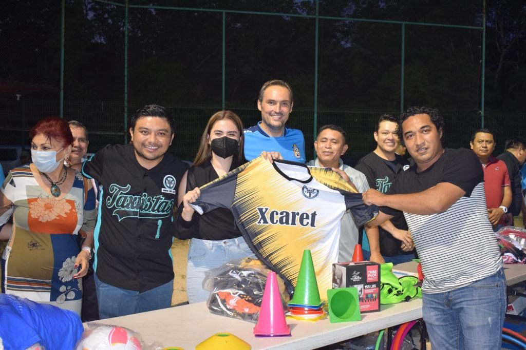 Acompañando al Comité Directivo del Sindicato Lázaro Cárdenas del Río, en la entrega de estos apoyos a los equipos deportivos, estuvieron presentes Rosita Escobedo Campos, Presidenta Honoraria del DIF Solidaridad, así como Amador Gutierrez Guigui, Director General del Instituto del Deporte del Municipio de Solidaridad y Alejandro Tun, Director Deportivo del Instituto del Deporte del Municipio de Solidaridad.