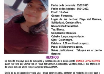 Read moreDetailsMónica López Servín de 16 años fue vista por última vez por sus familiares el pasado 31 de enero de...