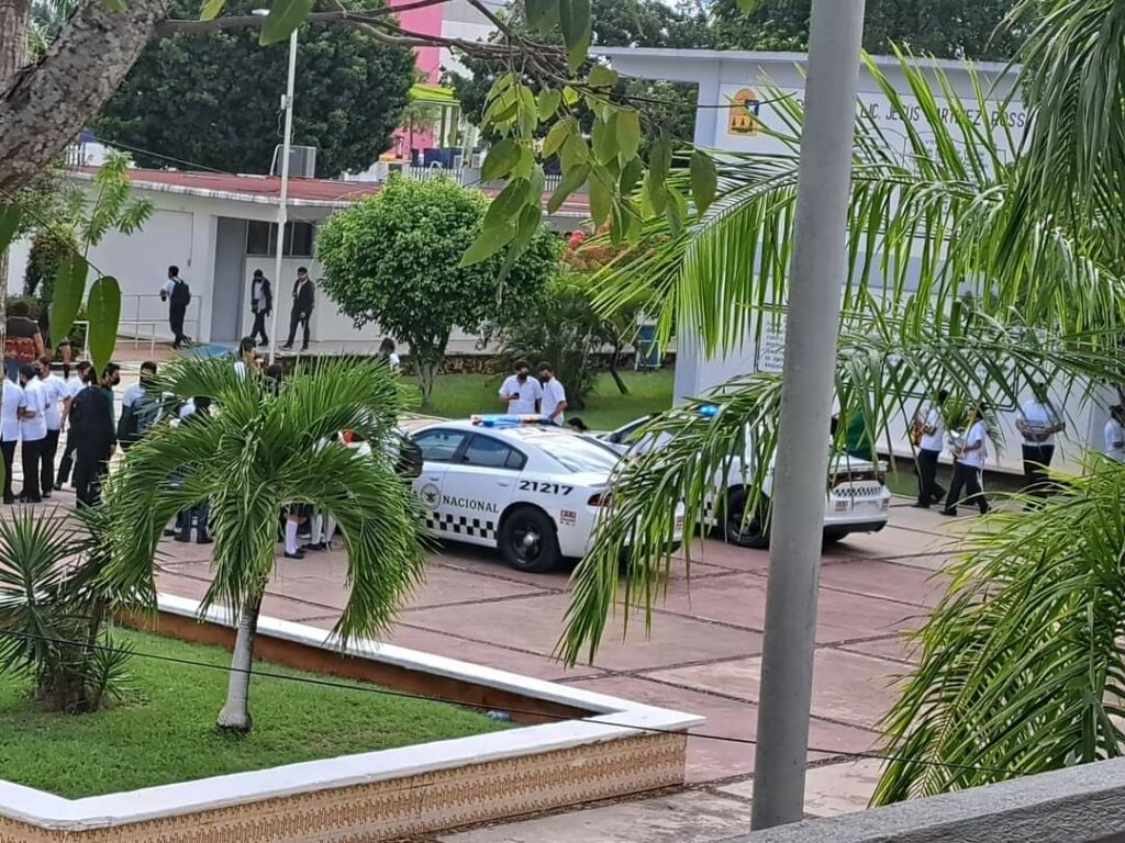 Lo anterior derivo de que hoy por la mañana personal de la Guardia Nacional, realizó una plática con los estudiantes de varios salones y luego se llevó a cabo una revisión de mochilas.