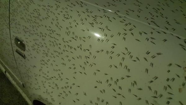En muchas calles y avenidas de la ciudad, se ha podido observar grandes cantidades de estos insectos, que cubren literalmente las paredes de viviendas, negocios y hasta automóviles enteros y que dejan un