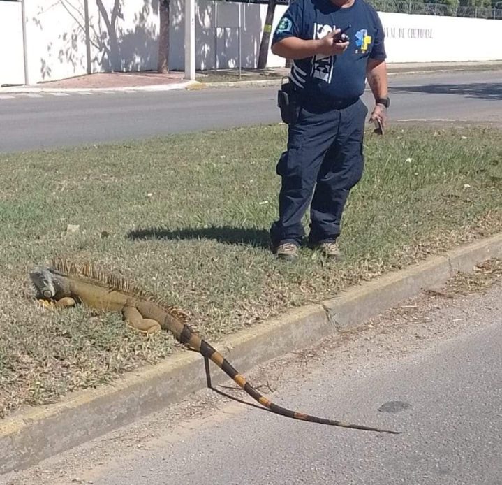 Varias llamada al número de emergencias 911, fueron informadas de la presencia de una iguana en la avenida Insurgentes con Emiliano Zapata, por lo que, Paramédicos de Emergencias Médicas del Sur llegaron al lugar y cuidaron el paso del animal, los cuales, avisaron al equipo de bomberos, quienes, al arribar, la pusieron a salvo.