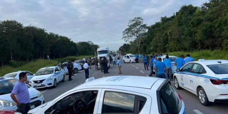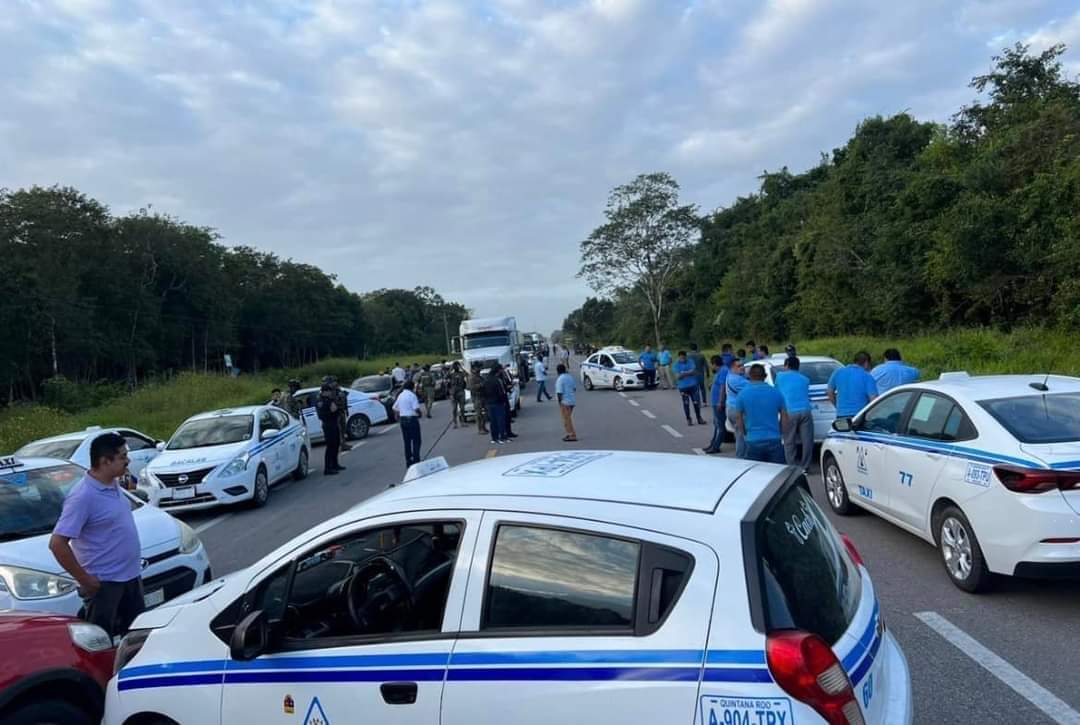 Un grupo de taxistas se manifestaron desde las 08:30 horas de hoy, sobre la carretera federal 307, a la altura del tramo Chetumal-Felipe Carrillo Puerto, esto como reclamo por la entrada de la plataforma UBER en los municipios de Bacalar y Othón P. Blanco, generando con esto, problemas en la tránsito vehicular.