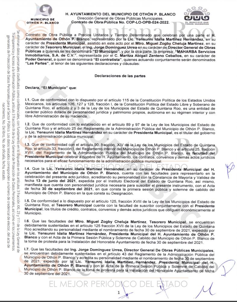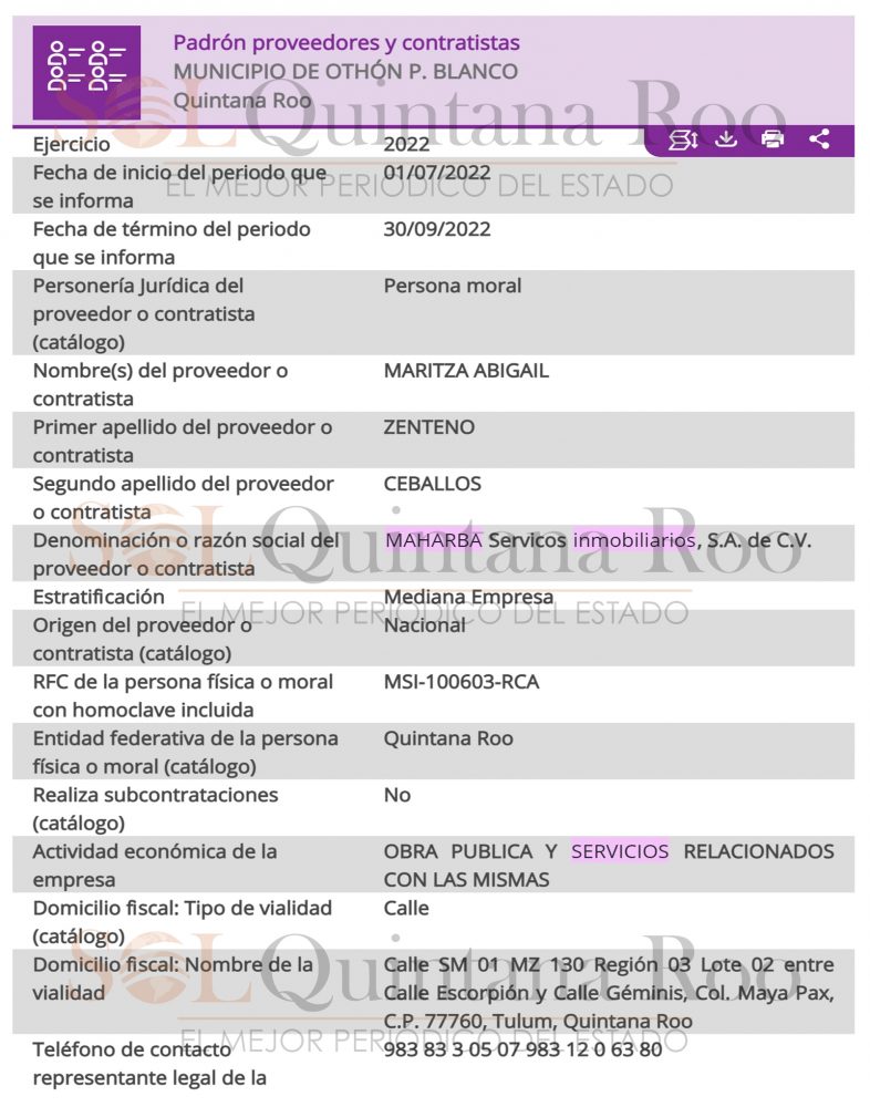 Asimismo, la empresa ha sido beneficiada no sólo en el municipio de Othón P. Blanco, sino también en los municipios de Tulum y Solidaridad y la Secretaría de Obras Públicas.