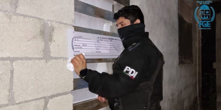 Elementos de la policía de investigación de la Fiscalía General del Estado procedentes de Playa del Carmen, catearon un domicilio ubicado en la calle Emma González Canto, con el apoyo de agentes de la Policía Municipal de Cozumel.