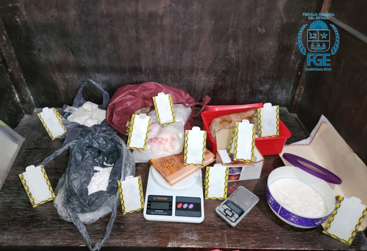 Entre las acciones se aseguraron diversas bolsas que contenían polvo blanco y sustancia sólida con características de la cocaína. los agentes también incautaron algunos objetos como básculas, bolsas y cajas.