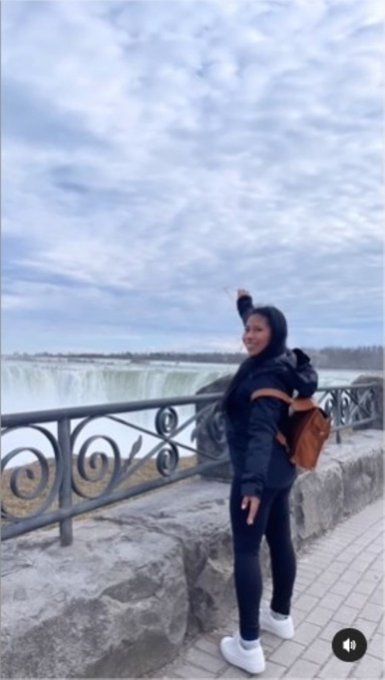 La actriz Mexicana hizo un viaje de relajación a Canadá visitando la ciudad de Toronto en dónde a parte de conocer la ciudad y los lugares más emblematicos de ésta, también aprovechó su estadía ahí para darse un respiro de su ajetreada agenda laboral y se fue a visitar las Cataratas del Niágara.