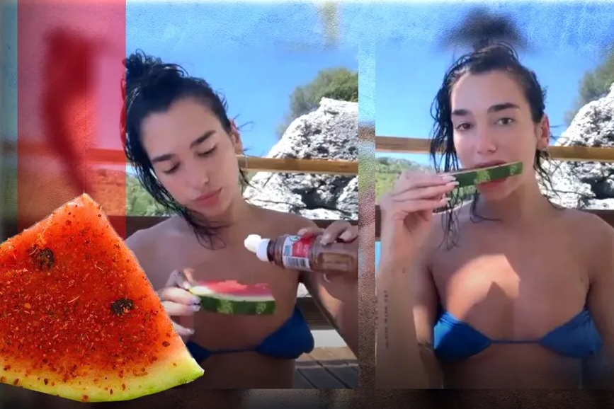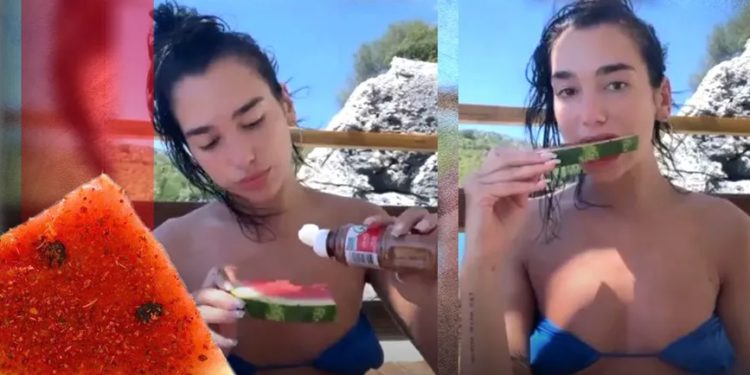 Dua Lipa sube video comiendo sandía con Tajín