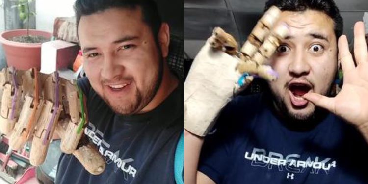 Fue a través de TikTok, donde Paco sorprendió a millones de usuarios mostrando su desarrollo, pues él desafortunadamente no tiene una mano y de ahí nació la necesidad de la elaboración de su propia prótesis, la cual además de la madera cuenta un arnés e hilos.