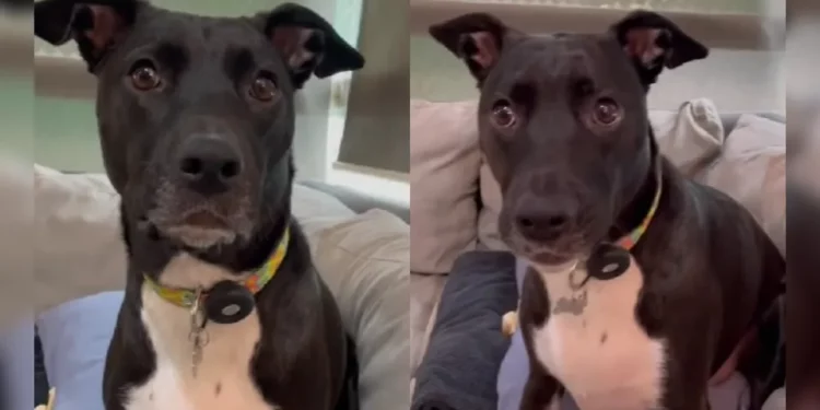 En el video se observa a Sydney, una perrita de color negro con blanco, sentada en un sofá mientras su dueña está a punto de hacerle una “confesión”.