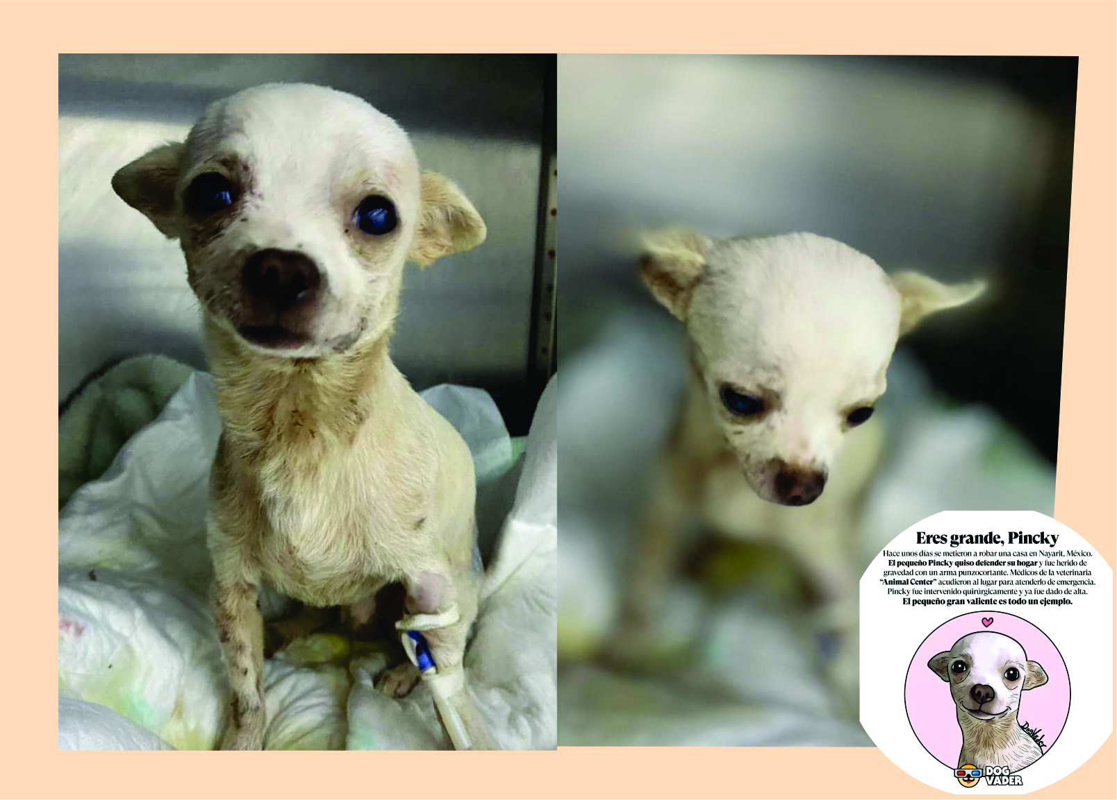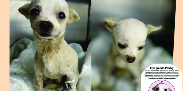 Una veterinaria en Nayarita contó que entraron a robar a casa de los dueños del perro mientras ellos no estaban y Pincky, al defender su casa, resultó gravemente herido.