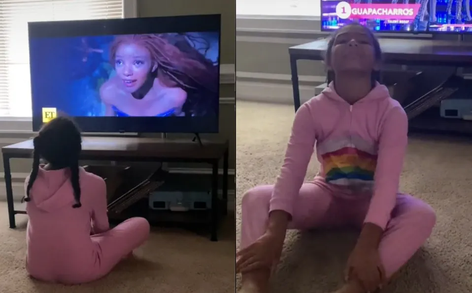 Una usuaria de TikTok subió un video a su perfil en donde muestra a su pequeña hija mientras ve por primera vez el adelanto de la película. Cuando la nueva sirenita, interpretada por la cantante y actriz Halle Bailey, aparece en escena, la niña voltea a ver a su mamá con un asombro gigante.