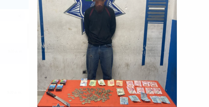 Policías de la Secretaría de Seguridad Pública y Tránsito Municipal de Solidaridad aseguraron a un sujeto señalado de cometer robo con violencia tras amagar con un cuchillo a la empleada de una farmacia en la colonia Centro.
