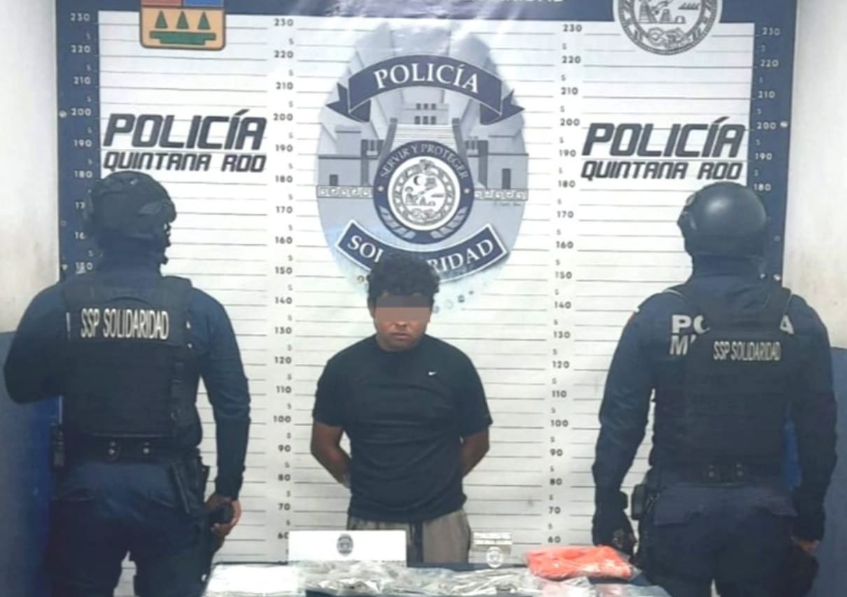 Sobre la avenida Halcones con calle Abocetas del fraccionamiento Villas del Sol, la Policía Preventiva detuvo a Faustino “N” de 32 años, originario de Tabasco, en posesión de 25 envoltorios con marihuana, ocho con la droga llamada cristal y 15 con el narcótico conocido como piedra tras ser sorprendido manipulando los envoltorios.