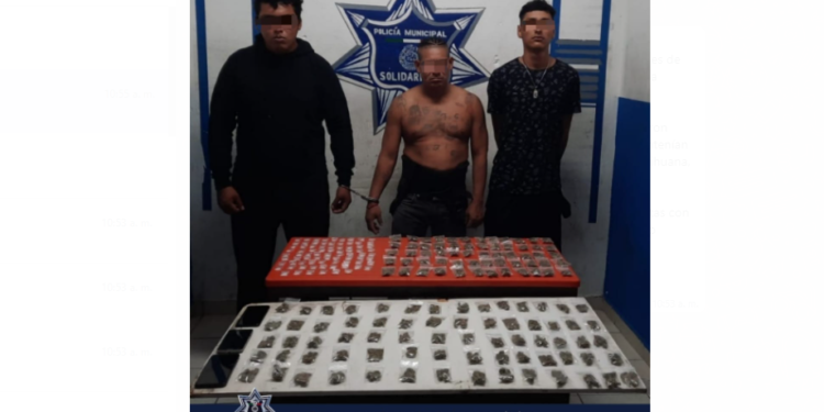 Policías municipales de Solidaridad aseguraron a tres sujetos con 208 dosis de narcóticos en la colonia irregular In House.