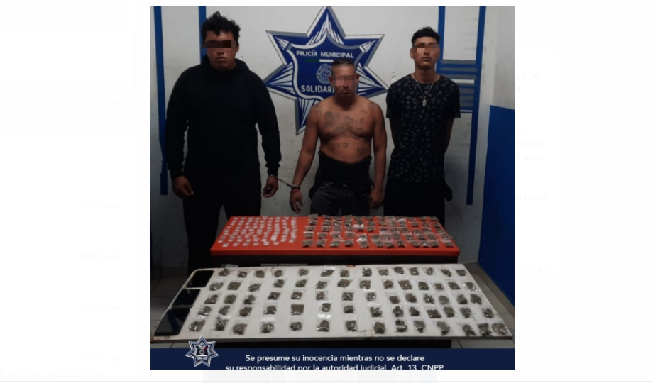 Fue en la tarde del sábado 05 de febrero, cuando los policías observaron durante un recorrido a tres hombres que manipulaban bolsas que contenían en su interior un vegetal verde y seco con las características de la marihuana, por lo que los oficiales procedieron a marcarles el alto.