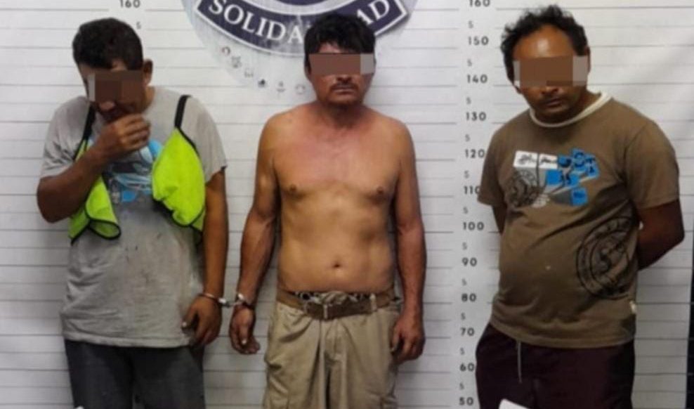 Tras darle alcance a quienes pretendían darse a la fuga, fueron asegurados Mario “N” de 40 años, originario de Tabasco, Julio “N” de 45 años y Orlando “N” de 41 años, ambos de Yucatán, así como dos machetes.