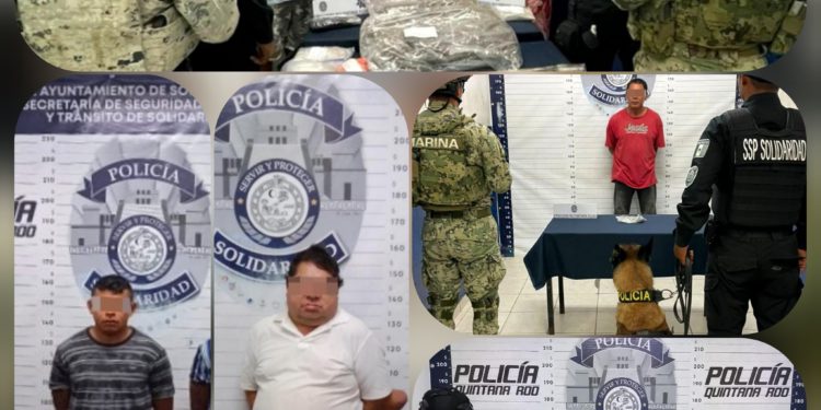 Luego de marcarles el alto, uno de los sujetos tomó un machete y amenazó a los oficiales pero fue asegurado. Después de efectuar una inspección de seguridad a las bolsas, los policías encontraron 5 paquetes que contenían un vegetal con las características de la marihuana, 1 envoltorio con una sustancia similar al cristal, un envoltorio con varias bolsitas dentro y un machete, por lo que los ahora detenidos: Baltazar “N” de 29 años de edad, proveniente de Chetumal, Miguel “N” de 37 años, oriundo de Oaxaca, Eduardo “N” de 35 años de edad, originario de Cozumel, Manuel “N” de 23 años de edad, oriundo de esta entidad y Frida “N” de 21 años de edad, originaria de la Ciudad de México, fueron asegurados.