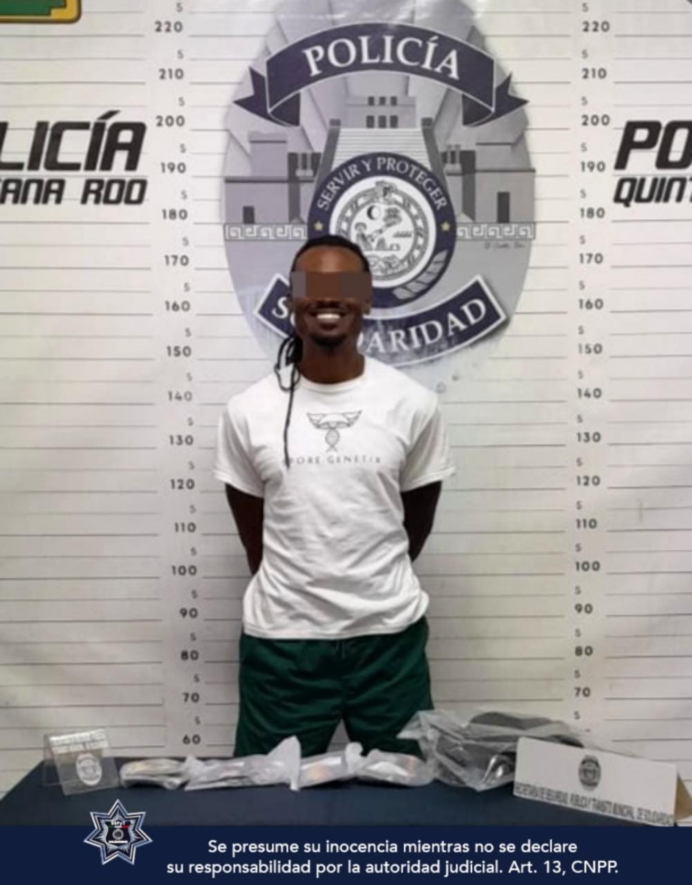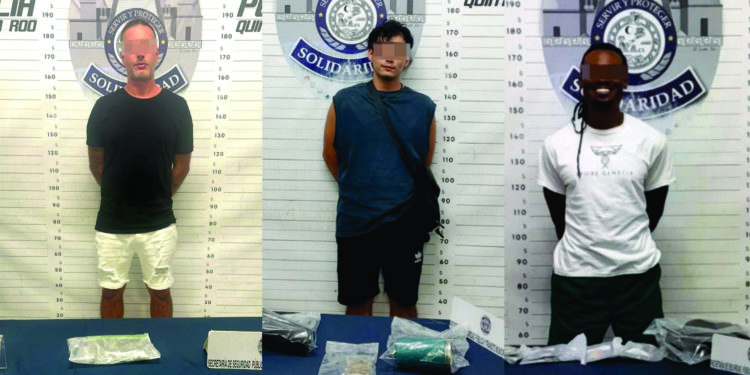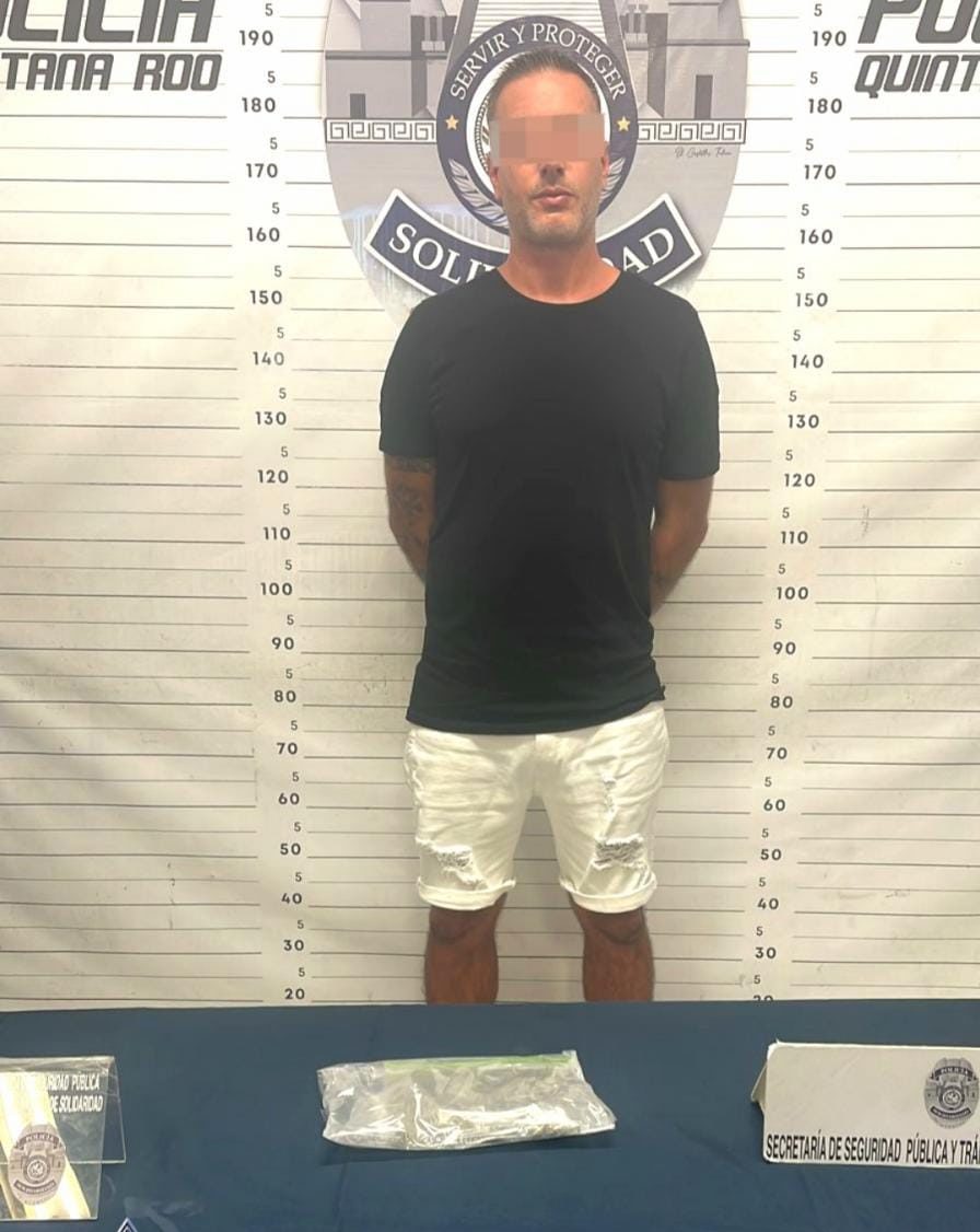 Más tarde del mismo día, en la avenida 45 fue asegurado Julien “N” de 39 años, originario de Francia en posesión de un envoltorio con posible marihuana, tras ser observado olfateando el envoltorio abordo de un vehículo marca Chevrolet, tipo Aveo.