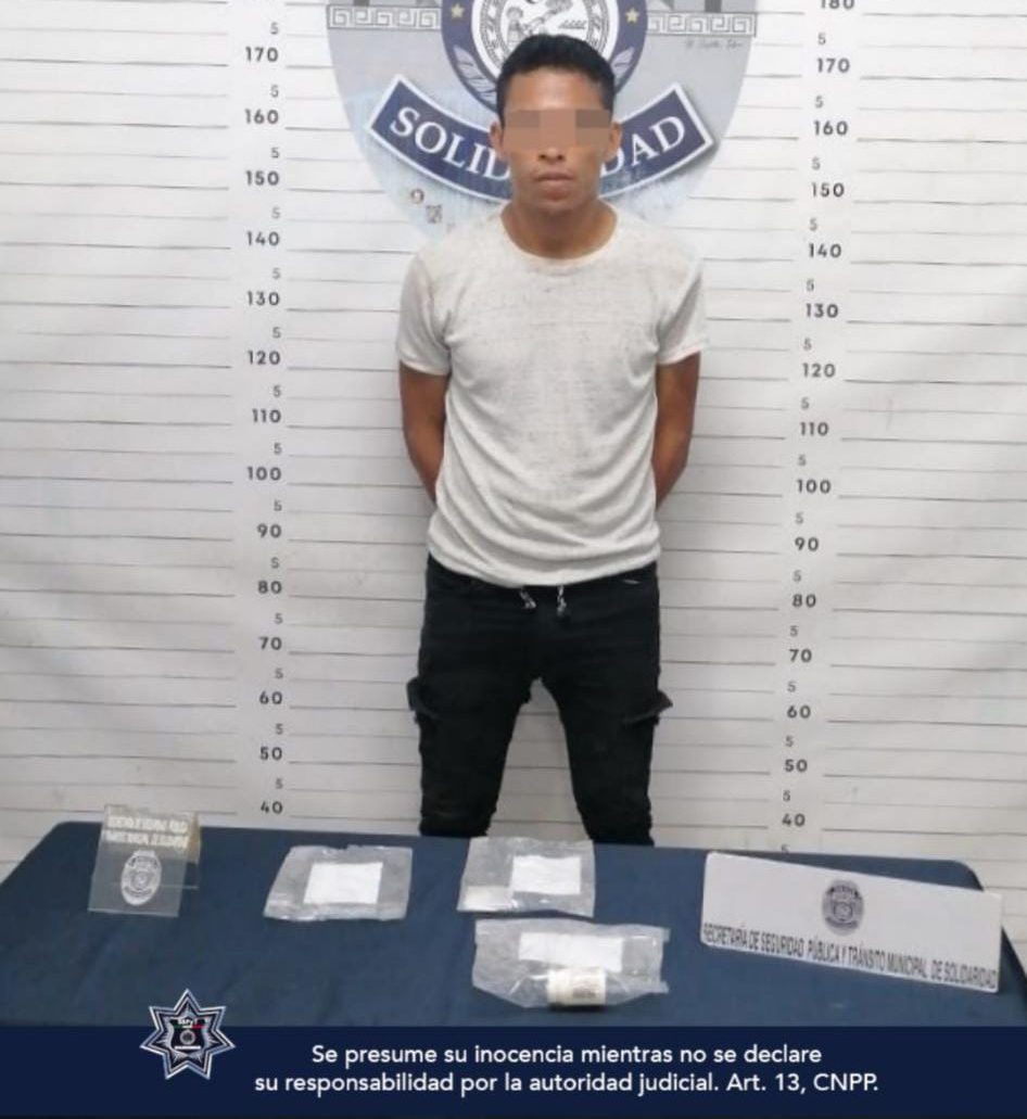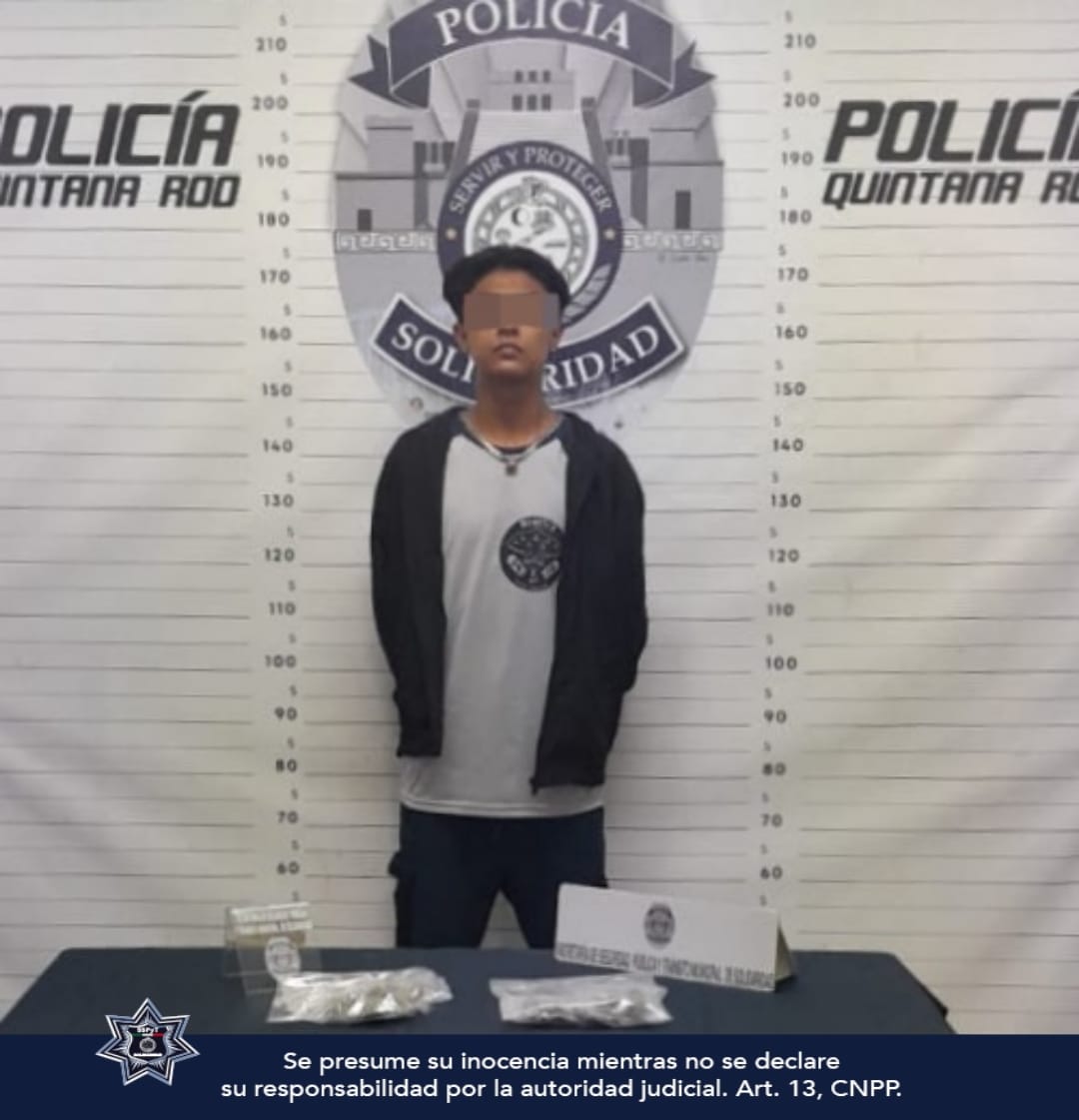 Durante la madrugada de hoy 8 de febrero, los policías aseguraron 14 envoltorios con marihuana y a José “N” de 20 años, oriundo de la Ciudad de México, quien fue sorprendido cuando sostenía los envoltorios en la calle 110 entre avenidas 25 y 30.
