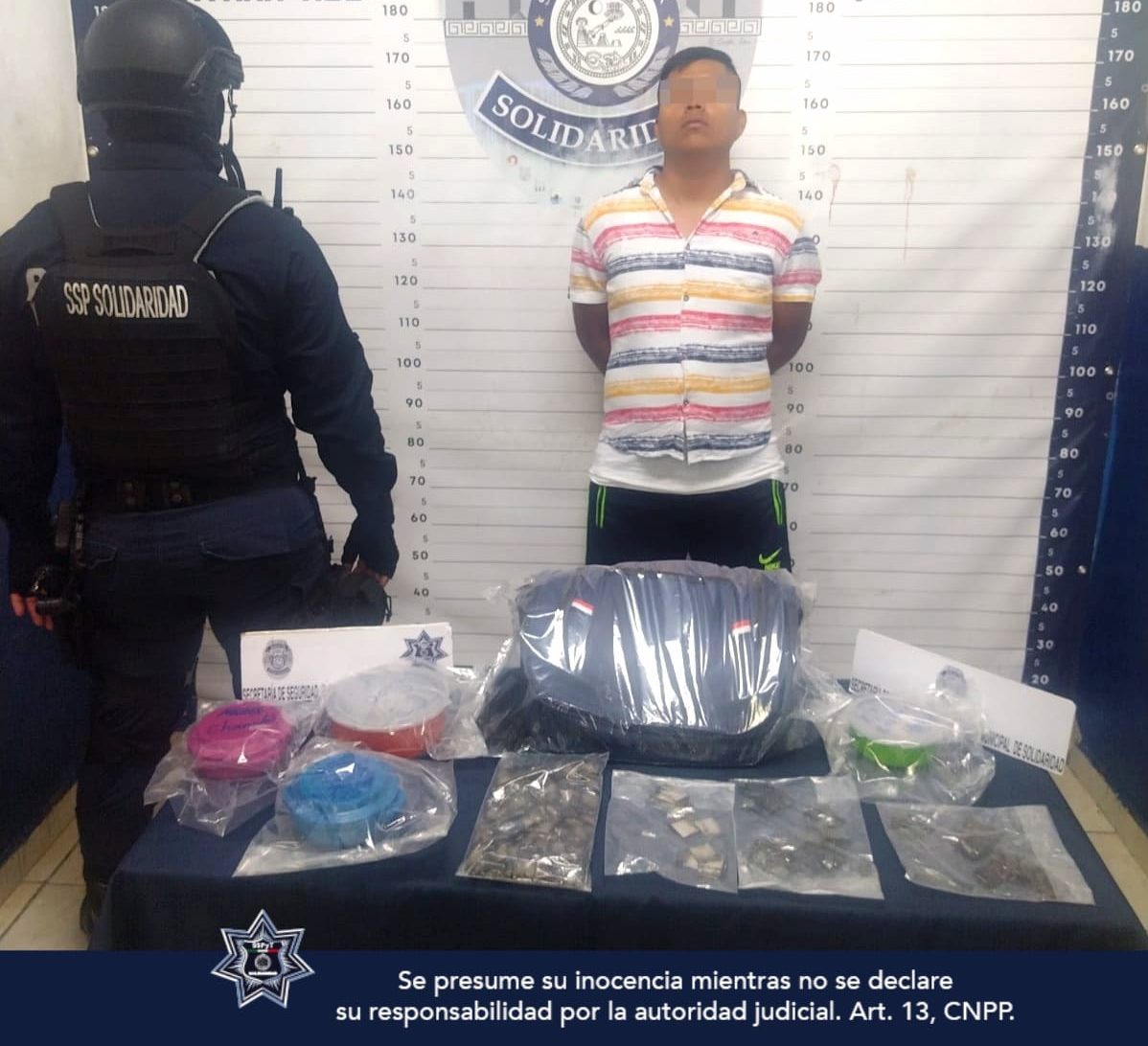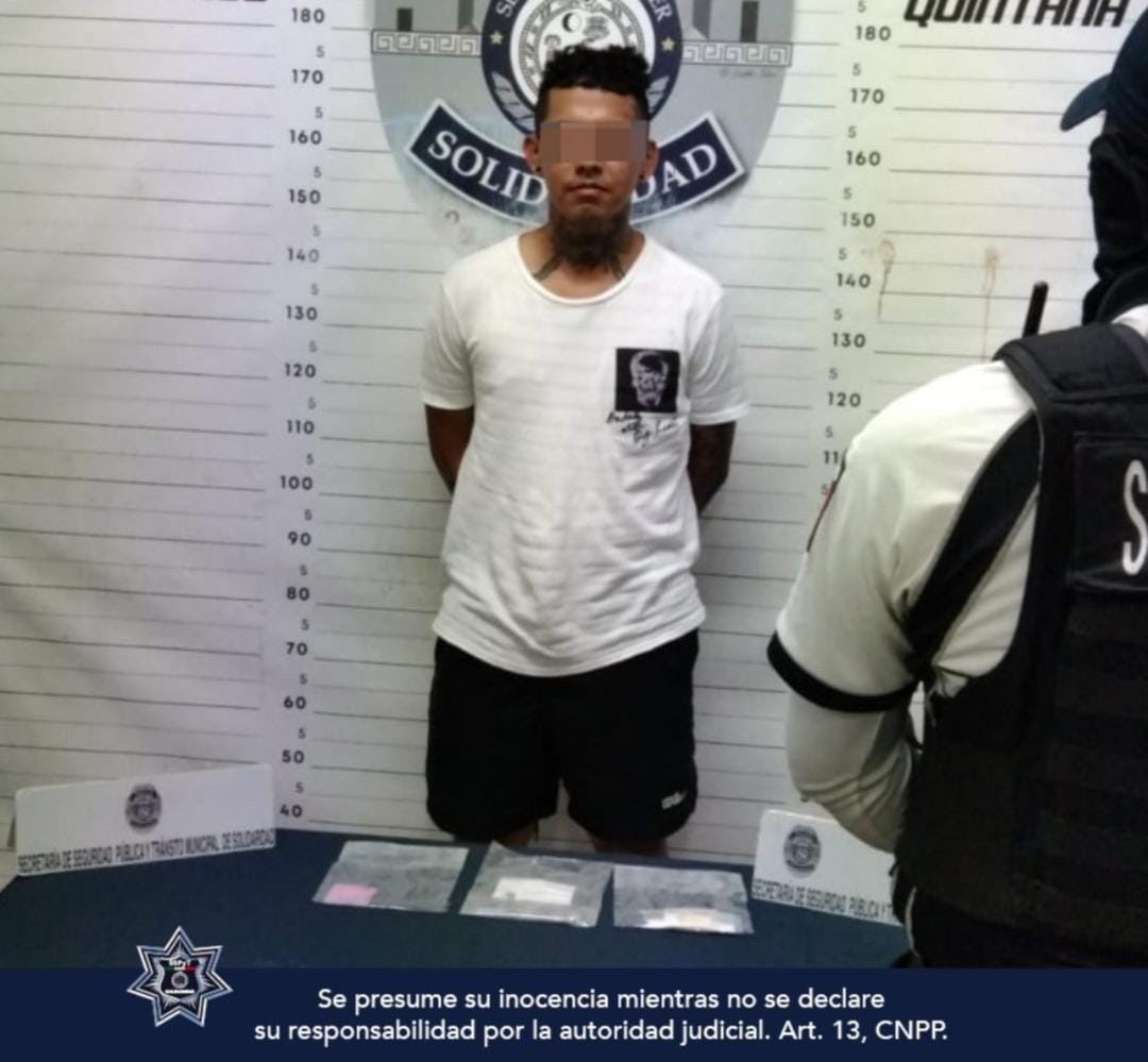 En otro caso, un sujeto identificado como Erick “N” de 28 años, originario de Yucatán, fue asegurado con 13 envoltorios con marihuana, 23 con la droga llamada cristal, 12 con la droga llamada piedra y 28 con cocaína, sobre la avenida Diagonal 85 con calle 24 de la colonia Ejido.