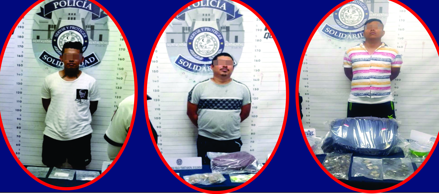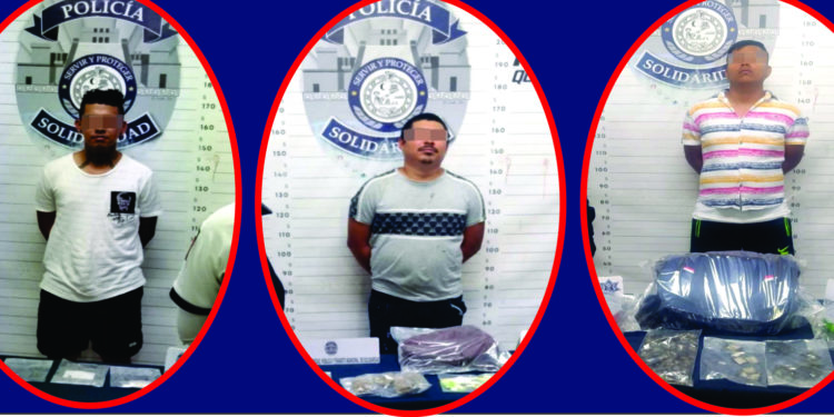 Fueron tres personas las aseguradas por policías de la Secretaría de Seguridad Pública de Solidaridad en posesión de drogas, durante el operativo nocturno de vigilancia.