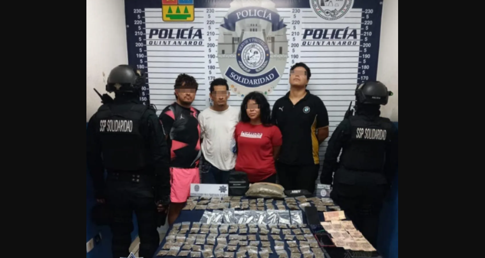 Cuatro personas, presuntamente, dedicadas al narcomenudeo no lograron salirse con las suyas, al intentar escapar de la autoridad, tras ser descubiertas entregando mercancía a un sujeto en Playa del Carmen. Fueron detenidas en el fraccionamiento Villas del Sol.