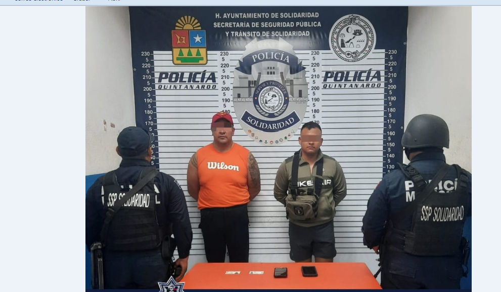 Dos sujetos fueron asegurados por policías de la Secretaría de Seguridad Pública y Tránsito Municipal de Solidaridad y la Secretaría de la Defensa Nacional, por la posible comisión del delito de usurpación de las funciones del servicio público al identificarse como policías activos tras ser detenidos por conducir de forma temeraria sin respetar el Reglamento de Tránsito.