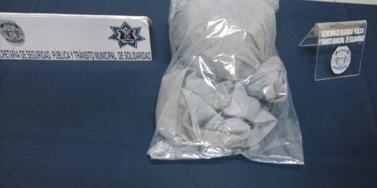 Ante el descubrimiento de esta tela con nudos en los extremos que tenía envuelto en su interior marihuana, fue puesto a disposición de la Fiscalía Especializada en Delitos Contra la Salud, en tanto se investiga la procedencia de la droga encontrada.
