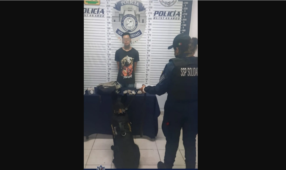 Perro policía detecta a narcomenudista en Playa del Carmen
