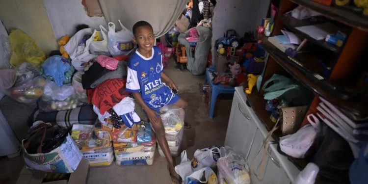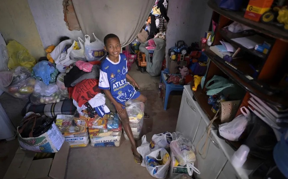 Hace una semana, las alacenas de la cocina de la familia Barros estaban vacías. Pero ahora los paquetes de comida no caben en los estantes, después de que el brasileño Miguel Barros, de 11 años y uno de ocho hermanos, llamara desesperado a la policía para informar de que en su casa no había “nada para comer”.