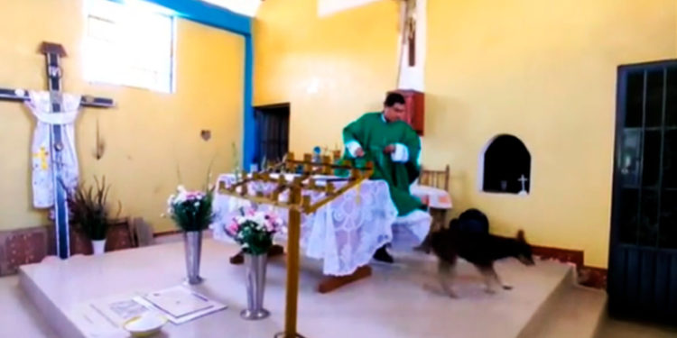 Sucedió en una iglesia del poblado de Yungay, en Áncash, Perú, un sacerdote dio tremenda patada a un perro que ingresó mientras ofrecía misa. El religioso trató de argumentar su acción: “Decía Jesús, mi casa es casa de oración… A veces molesta esto cuando el animal sube y la gente lo ve como quien dice, ‘no que suba nomás’”.