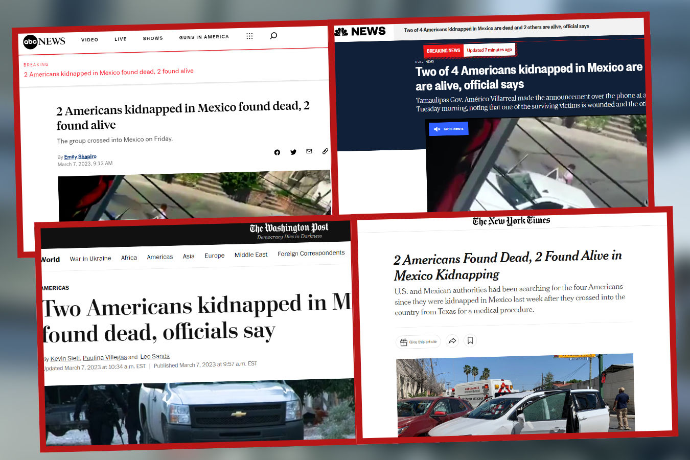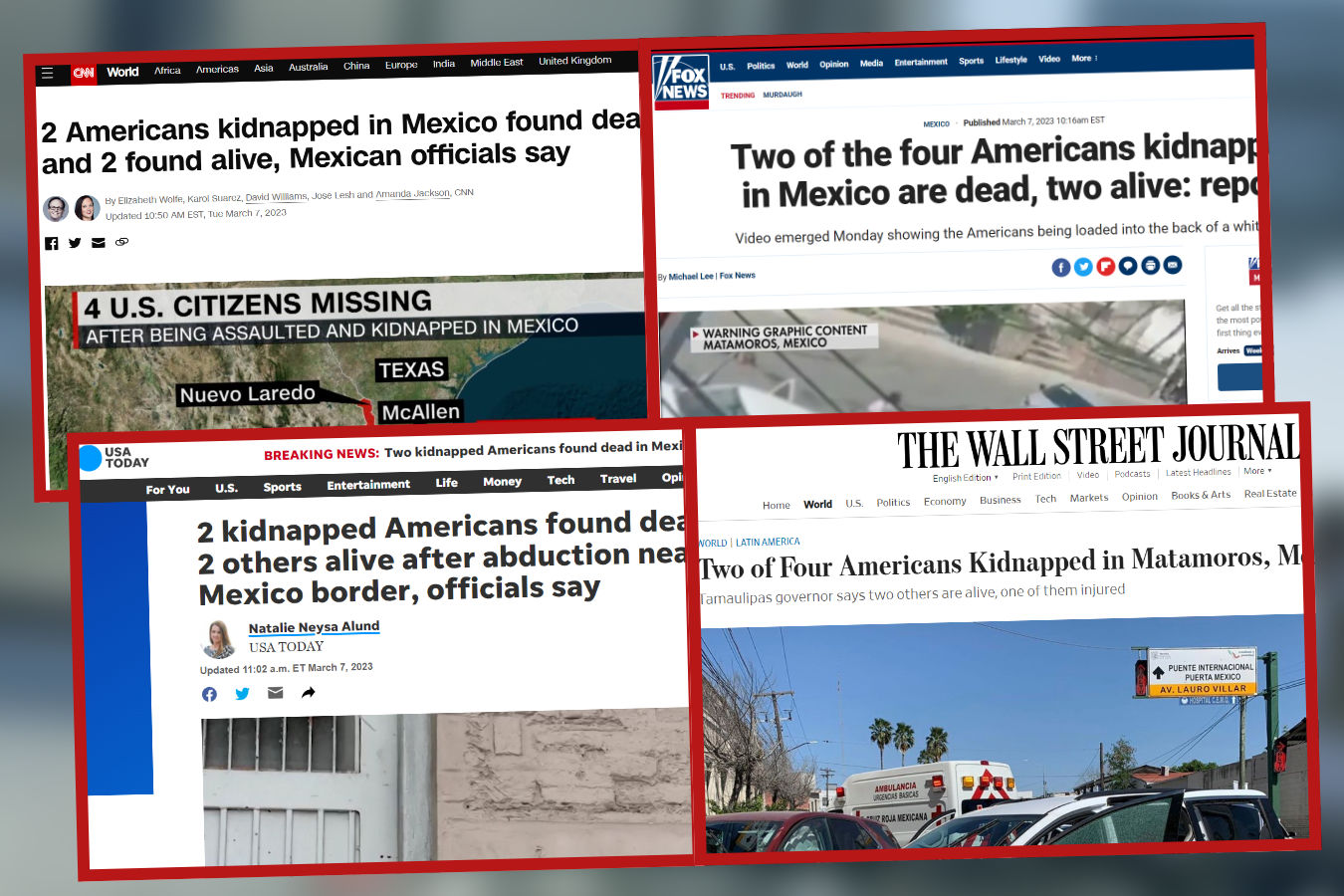 Tanto las grandes cadenas de televisión de Estados Unidos como los diarios cubireron la nota del secuestro de los estadunidenses en Matamoros. La cadena ABC fue la primera en informar la muerte de los dos ciudadanos extranjeros, que fueron identificados como Zindell Brown, Eric James Williams y los primos Latavia “Tay” McGee y Shaeed Woodard.