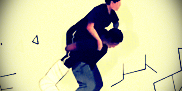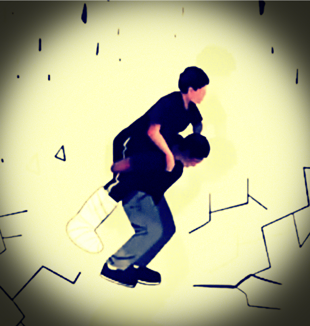 El primero de ellos no puede caminar, el segundo es un compañero que sabe que hay alguien que lo necesita y sin pensarlo se abalanza hacia él y lo coloca en su espalda para cargarlo e intentar poner sus vidas a salvo como todos los demás.
