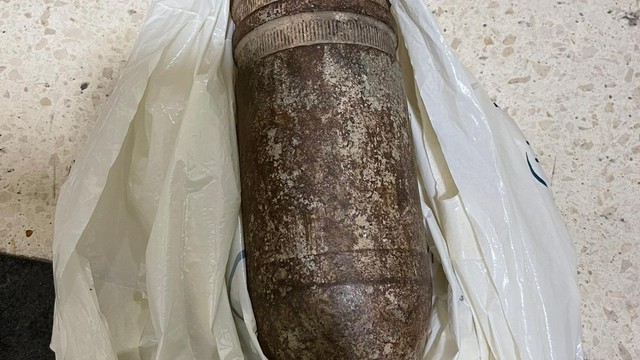 An American family who visited the Golan Heights decided to bring back a souvenir: An unexploded artillery shell.