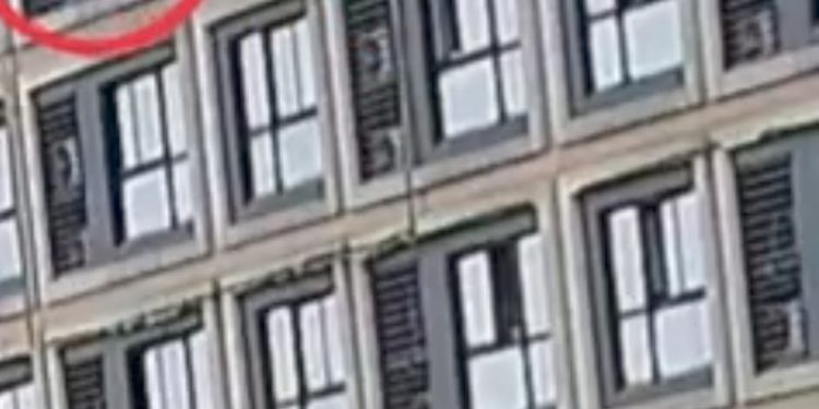 El video de lo ocurrido en la provincia de Zhejiang en China; muestra que mientras la niña va cayendo del edificio, el hombre quien se encontraba acompañado de una mujer hablaba por teléfono.