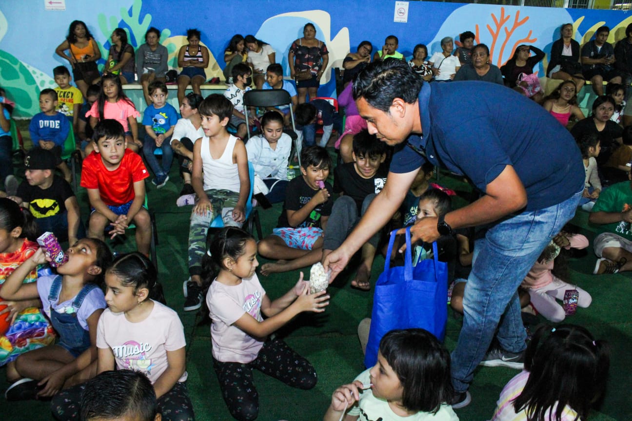 De esta manera las y los niños isleños pudieron disfrutar de una gran noche familiar de cine y de unas deliciosas palomitas. Osorio Magaña, informó además que el viernes, sábado y domingo, cada quince días se proyectará una película en el parque infantil del DIF.