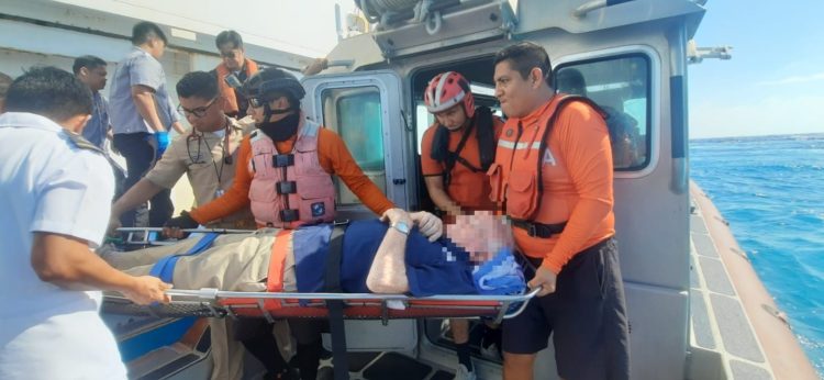 Por lo anterior y con el objetivo de salvaguardar la vida humana, se ordenó el zarpe inmediato de una embarcación tipo Defender con personal especializado y de Sanidad Naval a bordo quien, tras localizar el buque mencionado, efectuaron la revisión y evacuación médica de citadas personas a Puerto Juárez, Quintana Roo.