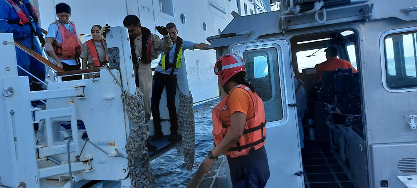 Por lo anterior se ordenó el zarpe inmediato de una embarcación tipo Defender con personal especializado y de Sanidad Naval a bordo, quienes tras localizar el buque mencionado, efectuaron la revisión y evacuación médica de citada persona a Puerto Juárez, Quintana Roo.