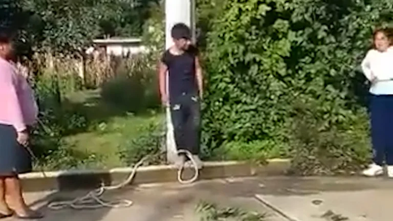 En la grabación se puede ver cómo la mujer señalada de robo recibió los latigazos entre lamentos y aseguró ser inocente. Mientras que el hombre se resistió al castigo, por lo que fue amarrado a un poste y sostenido por una de las mujeres mientras la otra lo golpeaba con la vara.