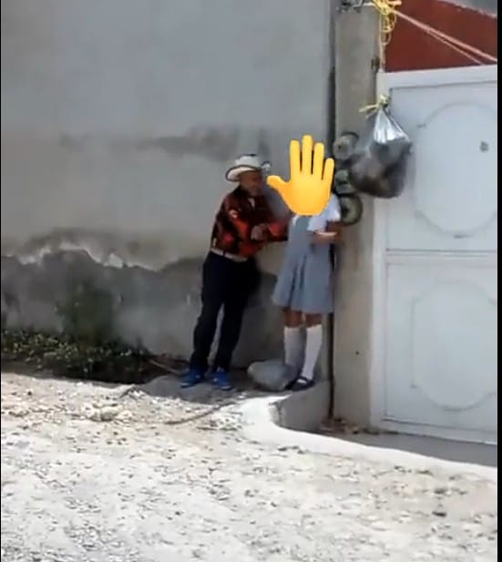 La lamentable situación tuvo lugar en la calle Hernán Cortés en Zimapán, Hidalgo. El video que circula en redes sociales habría sido tomado por los vecinos del lugar, mientras la menor y el hombre de la tercera edad se encontraban resguardados del sol en una barda.