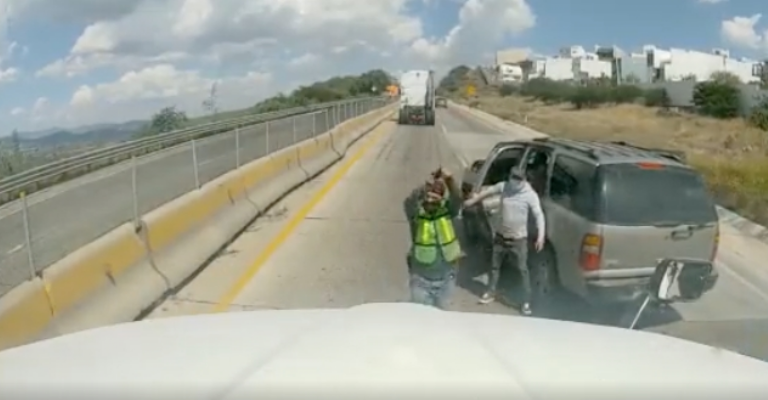 En menos de 60 segundos un conductor de tráiler y su copiloto fueron interceptados por sujetos armados para robarles la unidad de carga, mientras laban con dirección de Querétaro a Ciudad de México.